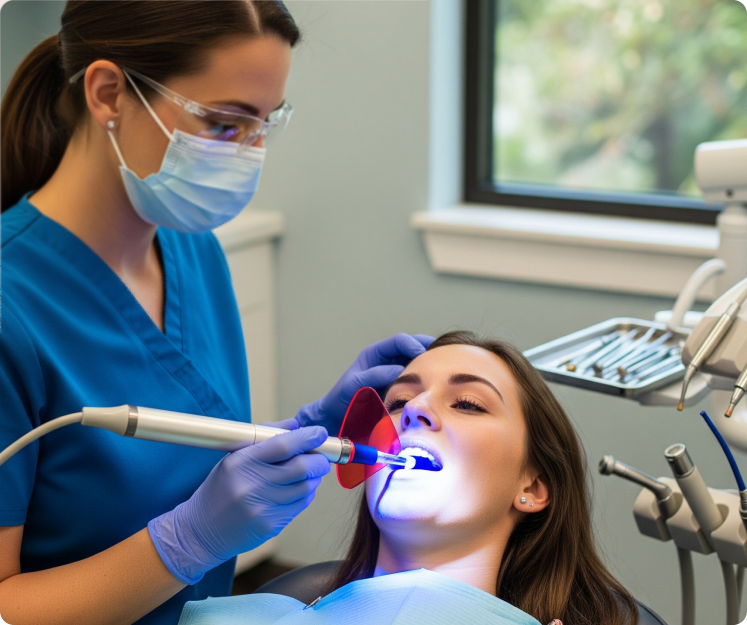 Our advanced teeth whitening isn't just about a brighter smile—it's a clinical-grade transformation that respects your enamel and lifts years of stains with precisely controlled, high-concentration gels and LED technology. The process is tailored to your sensitivity levels and with professional barriers, you get dramatic safer and even results.